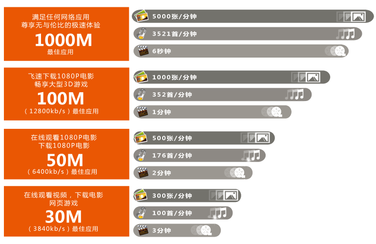 10-1000M不同套餐組合,滿(mǎn)足多樣上網(wǎng)需求